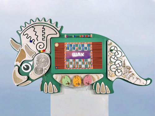 Сенсорные элементы бизиборда-динозавра выполнены в археологической тематике, кита - в морской. Сенсорные элементы бизиборда-зебры разработаны с акцентом на правила дорожного движения.