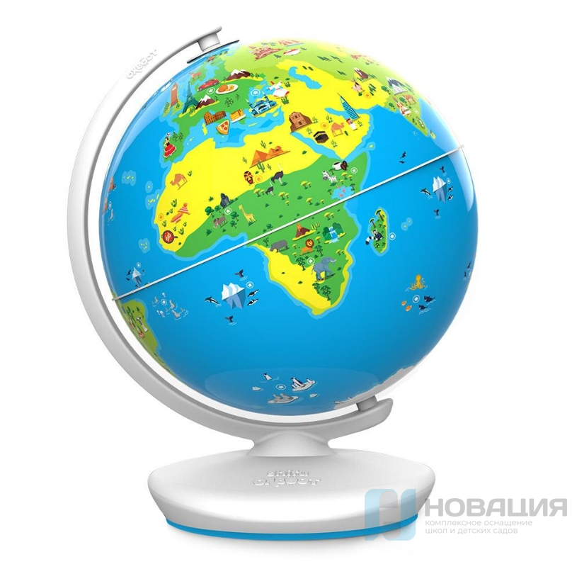 Материалы доступны на 14-ти языках (в том числе, русском, английском). Есть озвучка. В режиме игры пользователю предлагаются викторины, квесты с поисками сокровищ. Наклейки из буклета и штамп понадобятся для нанесения отметок на глобус.