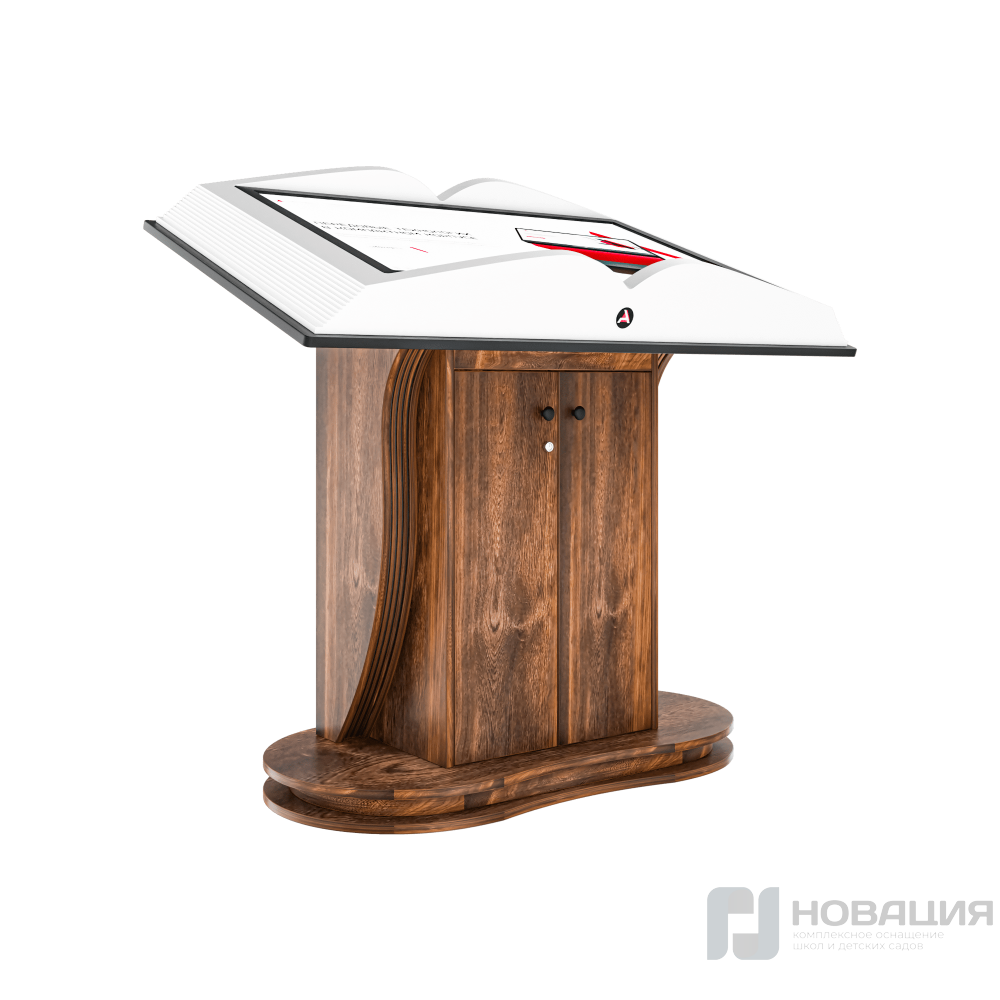 Модель изготовлена в виде раскрытой книги, в которую можно загрузить любой контент: от видео до текстовых материалов, которые можно оформить в формате перелистывающихся страниц.