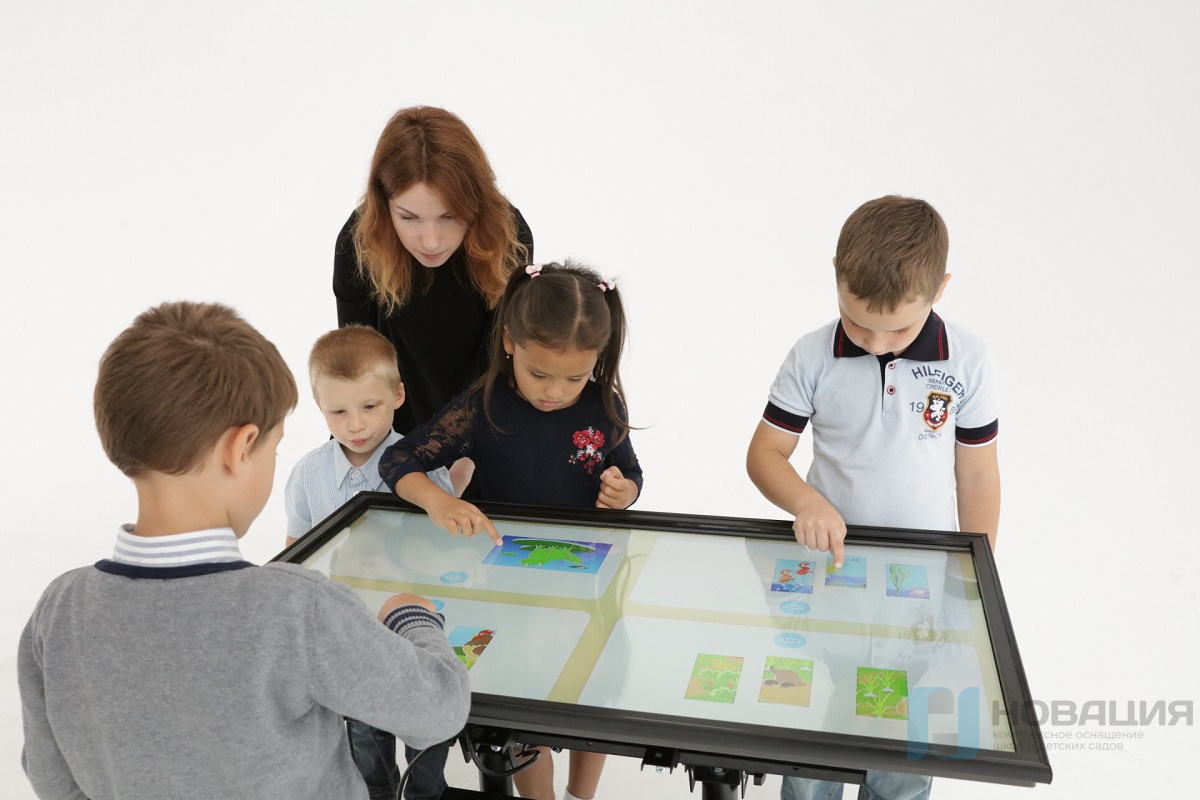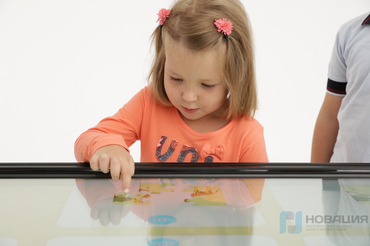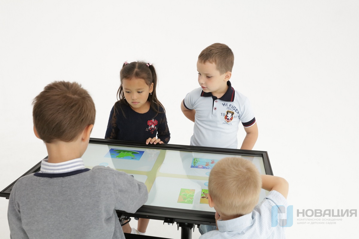 - Командный – задание предъявляется двум командам детей, экран стола в этом случае разделен на 2 зоны, материал по-прежнему хорошо виден каждому ребенку.