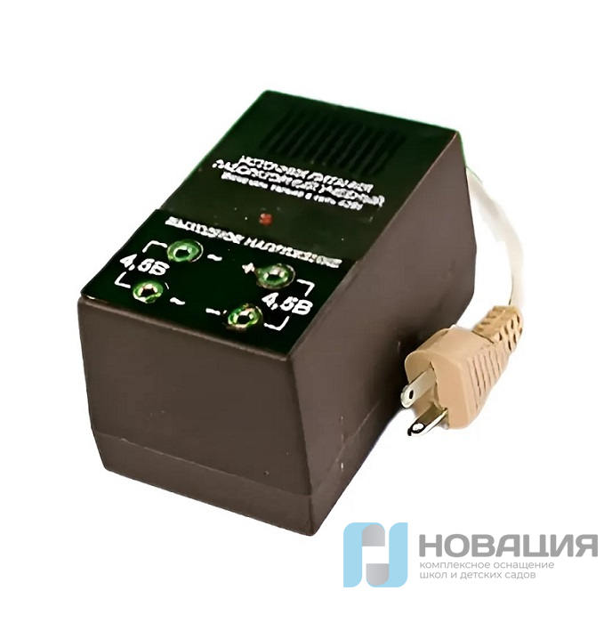 Источник подключается к оборудованию для лабораторных работ по физике. Пластмассовый корпус оснащен печатной платой, индикатором включения, гнездами для постоянного и переменного тока.