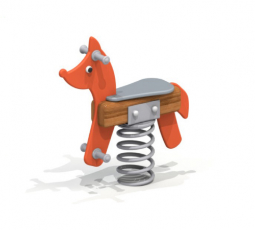 Одноместная детская качалка дополнена 2-мя поручнями и 2-мя подставками для ног. Фигурная панель в виде лисы переходит в сиденье без спинки. Внизу виброустойчивая пружина.