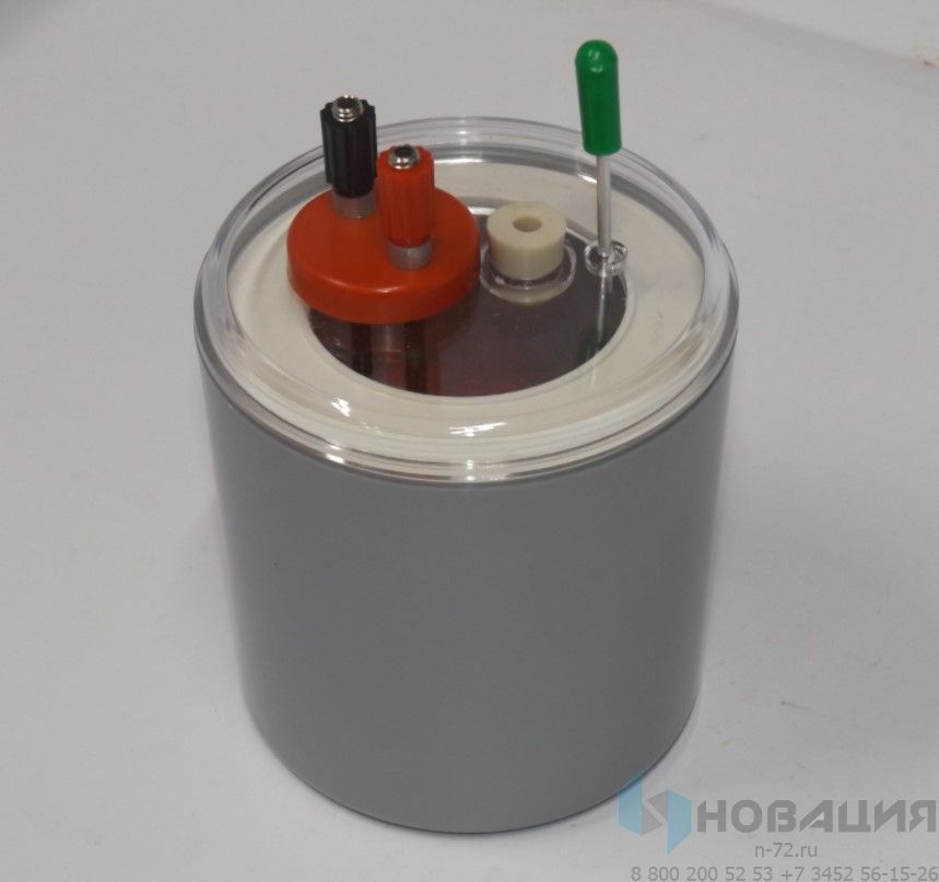Нагревателем служит спираль из проволоки с высоким удельным сопротивлением. Теплообмен между внешней средой и телами в калориметре снижается при помощи крышки. В ее отверстия вставляются мешалка, термометр и колодка. Цилиндрический внешний стакан отделен от внутреннего теплоизолирующей вставкой.