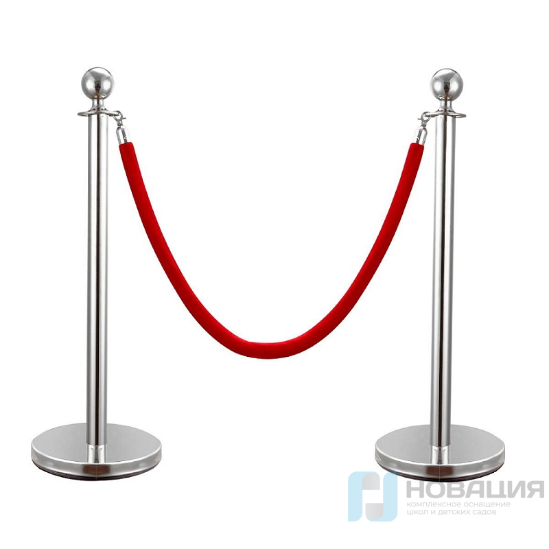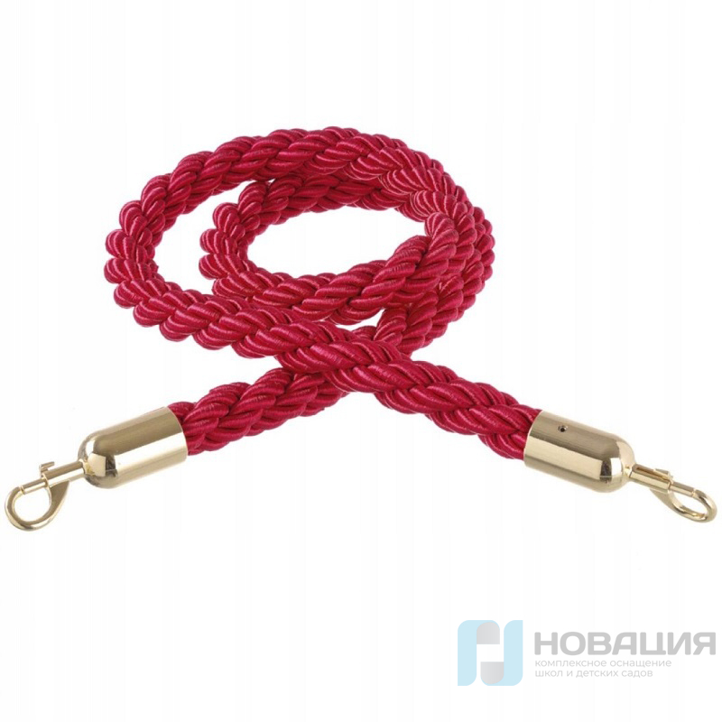 Плетеный канат предназначен для размещения на оградительных стойках. Концы оснащены карабинами для крепления. Локоны каната обмётаны блестящей капроновой нитью.