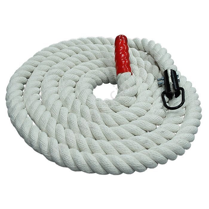 Гимнастический канат без узлов используется в школе во время обучения лазанию. Занятия полезны для развития выносливости и физической подготовки.