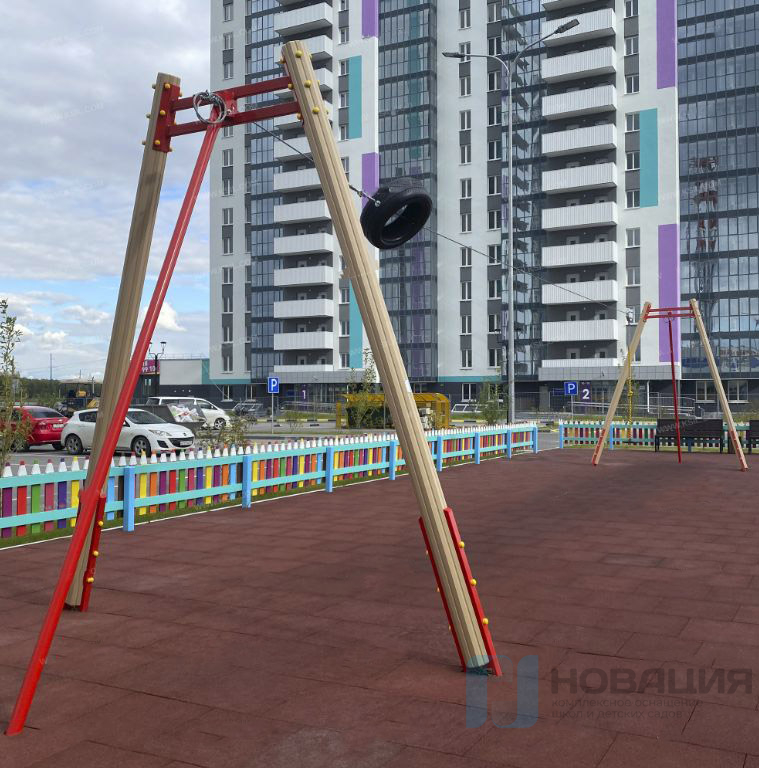 Материалы: металл, клееный брус, канат армированный, резина, пластик.