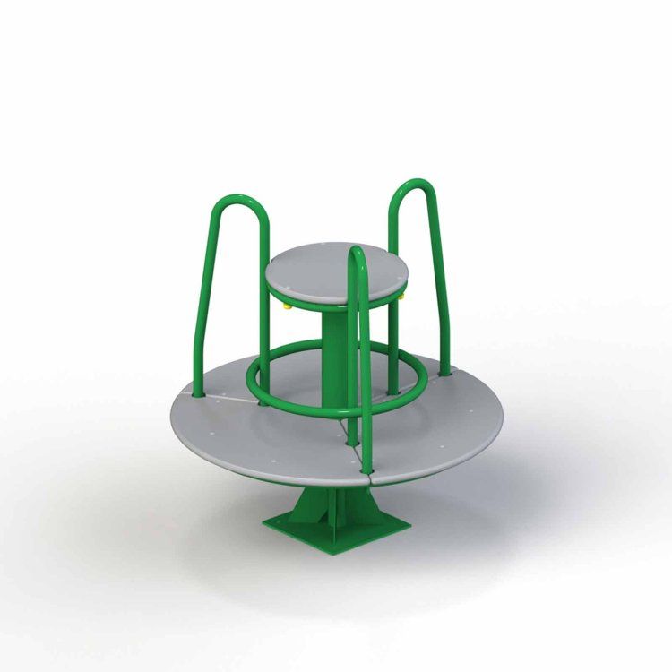 Платформа и сиденье выполняются из противоскользящей фанеры. Вместе с изогнутыми поручнями-трубами платформа закрепляется над круглой металлической опорой. Посадочные места безопасно вращаются вокруг вертикальной оси.