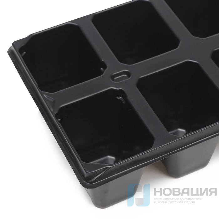 Блок емкостей для рассады представлен ячейками одинаковой вместительности. Непрозрачная тара защищает рассаду от воздействия ультрафиолета.