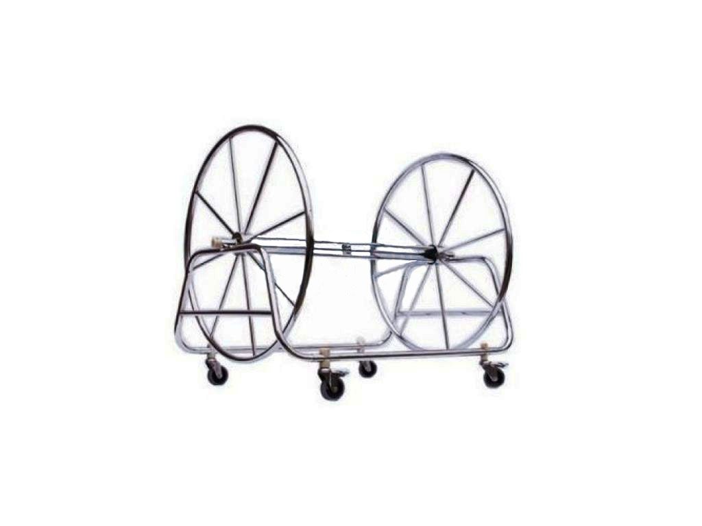 Конструкция сматывает разделительные дорожки для бассейна. Это позволяет экономить пространство складских помещений. Инвентарь не портится. Катушку на 4-х роликах легко поворачивать и передвигать. Центральная ось закреплена в горизонтальном положении между 2-мя колесами со спицами.