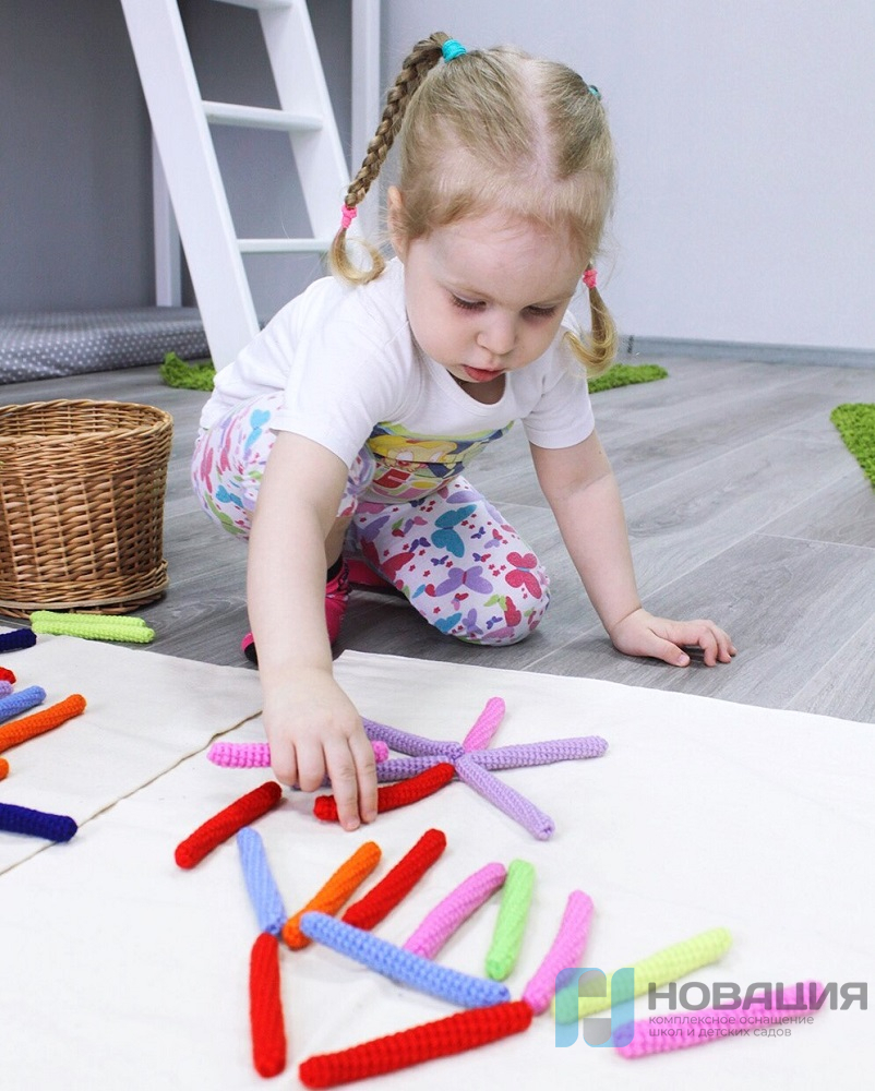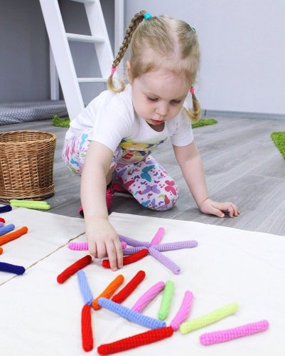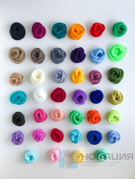 - Набор текстильных карандашей-веревочек «Вязаная графика» для индивидуального рисования (32 веревочки четырех длин: от 110 до 700 мм, 8 оттенков) - 10 наборов;
