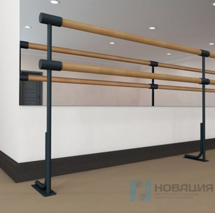 Напольный станок представляет собой сборную конструкцию, состоящую из двух кронштейнов и двух жердей. Отличается отсутствием острых выступов и углов во избежание травм на занятиях. Оптимален для использования на занятиях с группой разновозрастных людей.