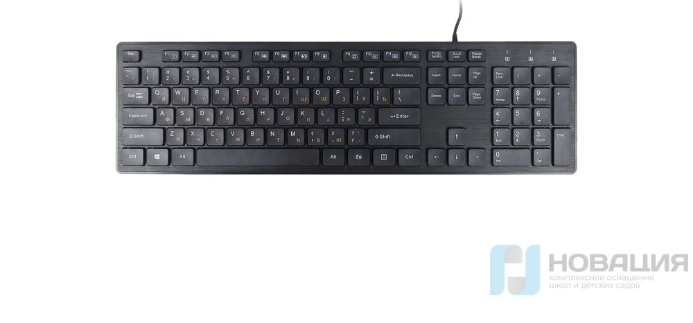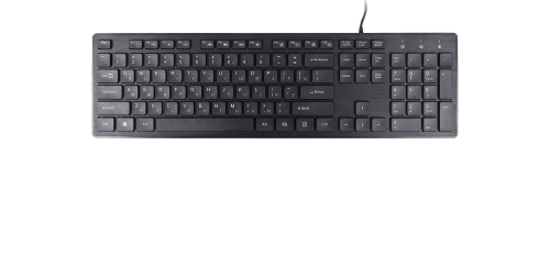 Клавиатура с тонким дизайном и клавишами островного типа оснащена мультимедийными функциями и дополнительными USB-портами для подключения устройств.