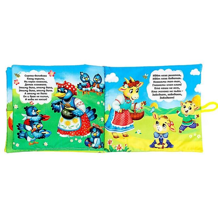 Книга из мягкого материала знакомит ребенка с забавными стишками, которые легко запоминаются. Простые тексты дополнены цветными иллюстрациями. Страницы можно сжимать.
