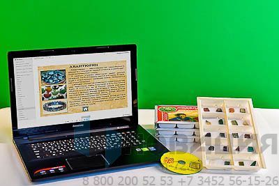 В комплект входят 20 полированных образцов различных поделочных камней и инструкция по эксплуатации. Все образцы наклеены на картонные карточки и подписаны.