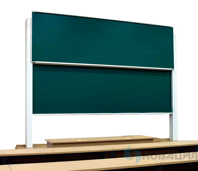 Доска двигается по вертикали. Такая конструкция гарантирует зрительный комфорт во время занятий. Рабочее поле объемное, подстраивается под актуальную высоту. Надписи на тонкой рельефной поверхности получаются разборчивыми.