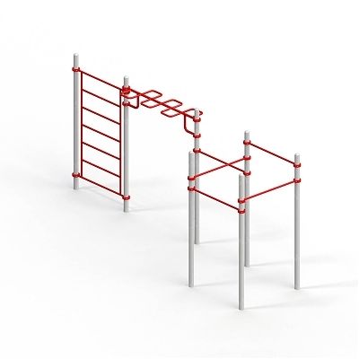 Комплекс условно делится на 2 секции, в одной из них перекладины и стойки, поставленные по углам квадрата. Вторая секция включает в себя последовательно расположенные стойки с закрепленными между ними лазом и рукоходом.