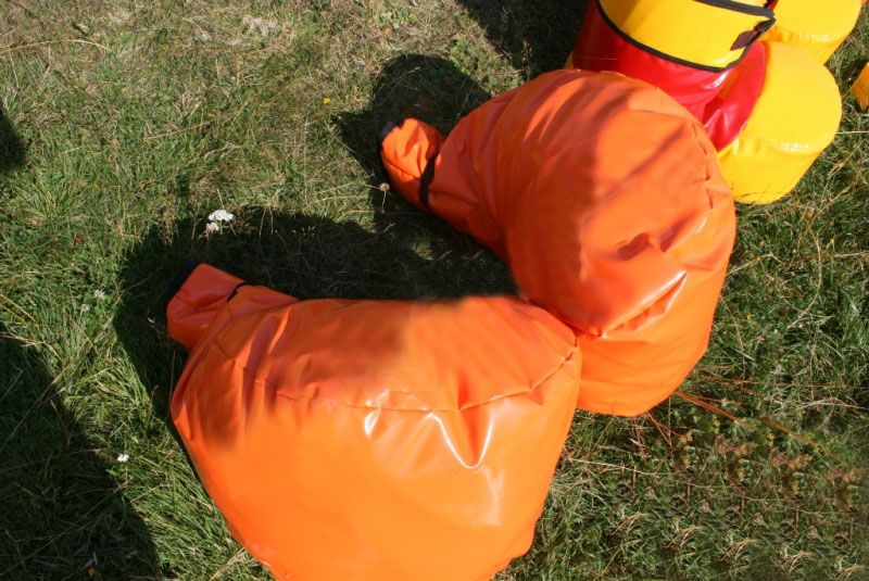 Участникам предстоит забег в обуви гигантского размера, прыжки в мешках, гонки на торпедах, бои в перчатках. Задания положительно влияют на координацию движений и ориентацию в пространстве. Для укрепления командного духа предлагается парный бег в огромных штанах, игра на перетягивание.