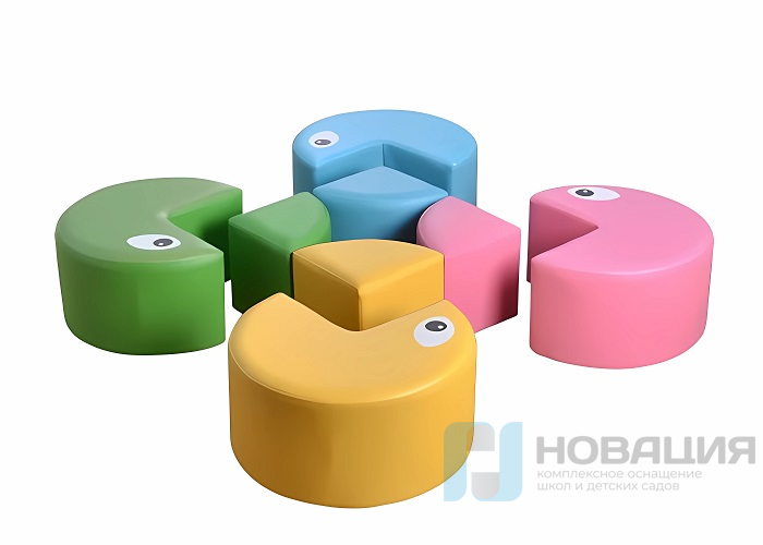 Пуфы располагаются в ДОУ, сенсорной комнате и игровой зоне.