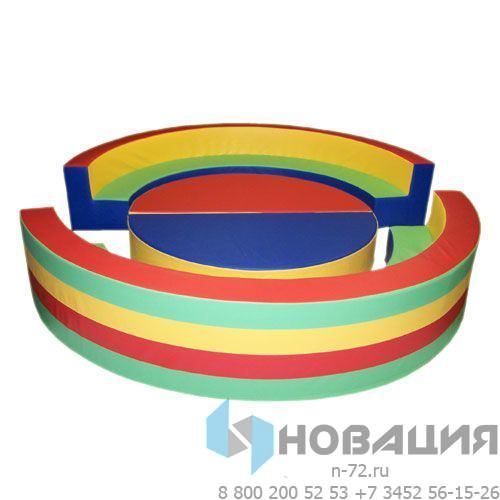 Бескаркасный комплект мягкой мебели предназначен для оснащения ДОУ и других дошкольных учреждений. Оптимально впишется в интерьер игровой комнаты. Включает в себя 2 полукруглых диванчика с высокой спинкой и 2 стола в форме полукруга. Мебель можно использовать в игровых целях, а так же для проведения развивающих занятий в неформальной обстановке.Материал: обивка — винилискожа, наполнение — мебельный поролон.