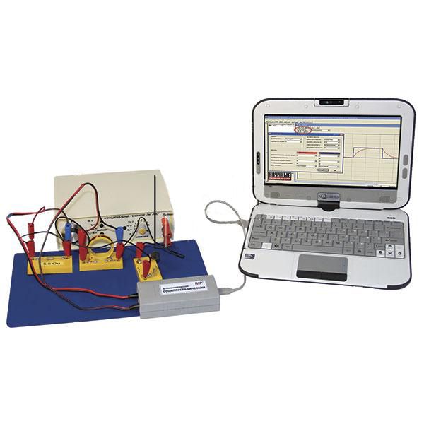 2-канальный осциллографический датчик напряжения подключается к ПК (не входит в комплект) через USB-вход. Напряжение на 2-х элементах электрической цепи синхронно регистрируется прибором. Программа для ПК осуществляет суммирование, благодаря чему определяется заряд.