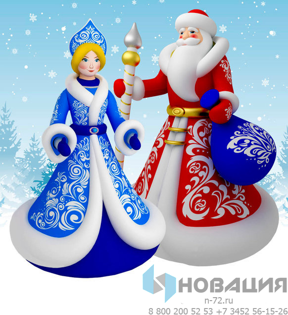- Дед Мороз 3000 мм, Снегурочка 2600 мм,