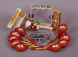 Народные музыкальные инструменты с художественной росписью предназначены для дошкольников и детей младшего школьного возраста.