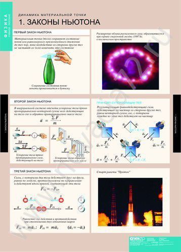Альбом с плакатами посвящен темам динамики и кинематики. Учебный материал преподносится в форме схем и рисунков с пояснениями.