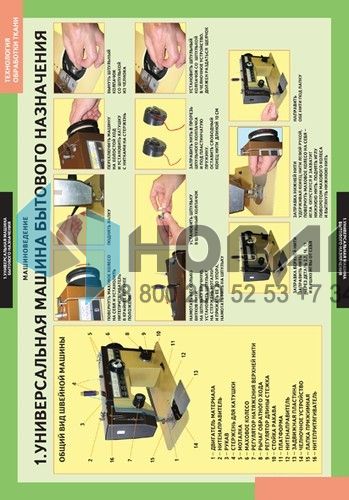 Комплект плакатов "Технология обработки ткани. Машиноведение" представлен на 6-ти листах.