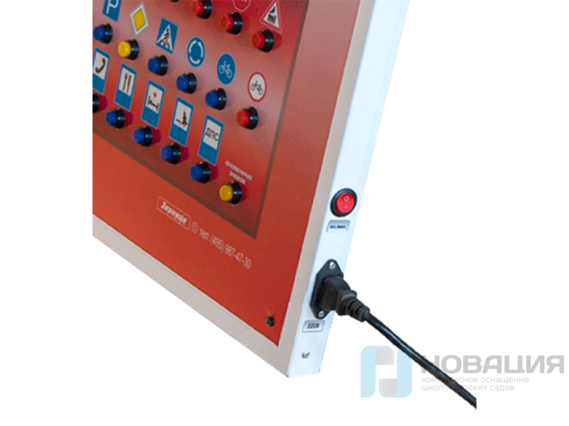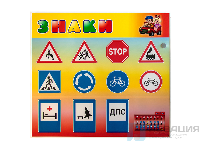 Комплект светового оборудования "Дорожные знаки" представляет собой интерактивную панель с 23 элементами в виде знаков дорожного движения. Игру сопровождает голос "Виртуального учителя", с которым детям будет легче запомнить значения дорожных знаков.