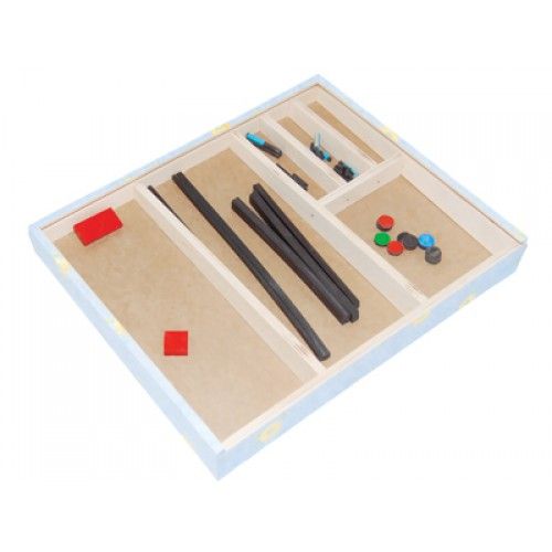 Тифлоприбор состоит из металлического поля с намагниченными полосами из дерева. Гибкие элементы неодинаковых цветов, форм и  размеров складываются в планы, рельефные графики.