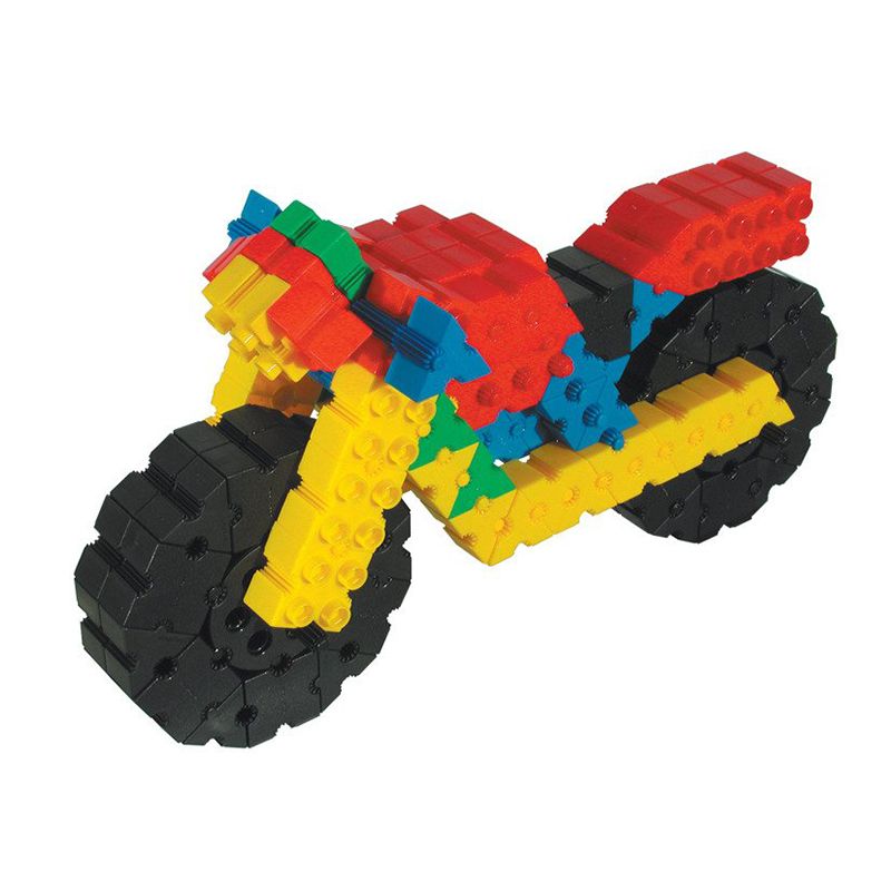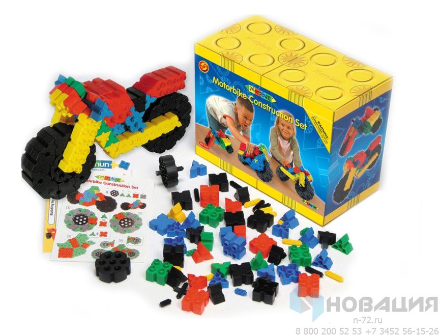 Конструктор в картонной коробке позволяет воспитанникам ДОУ самостоятельно обучиться сборке моделей мотоциклов.