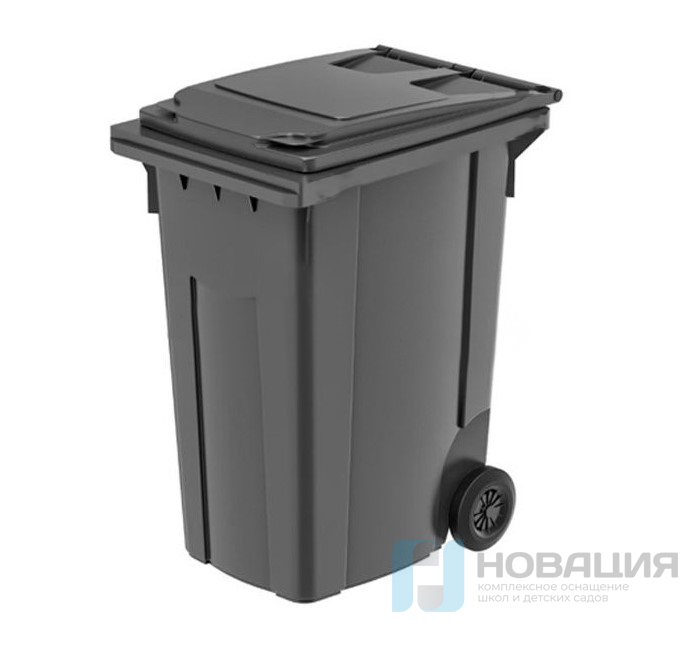 Контейнер с крышкой рассчитан на 360 л мусора, выдерживает нагрузку до 60 кг. Изделие на 2-х колесах не теряет прочностных характеристик при температуре до -40°С.