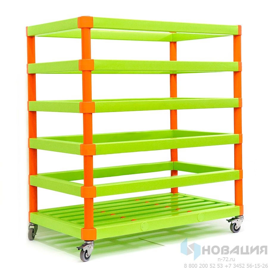 В корзине хранятся и транспортируются аквапалки. Каркас выполнен из жесткого ПВХ. Стойкий цвет не подвержен воздействию влаги. Основание прямоугольное. На боковых сторонах конструкции по 6 перекладин. Внизу 4 колеса.