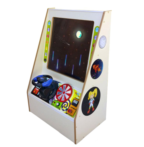 Панель управления оснащена многочисленными микроисточниками света и элементами в виде кубиков и игрушек.