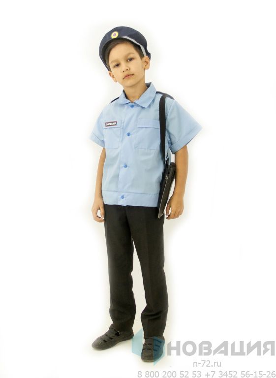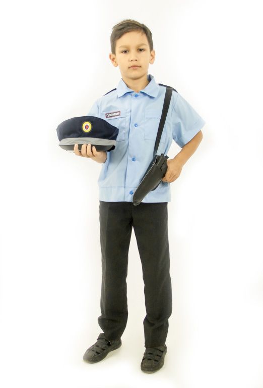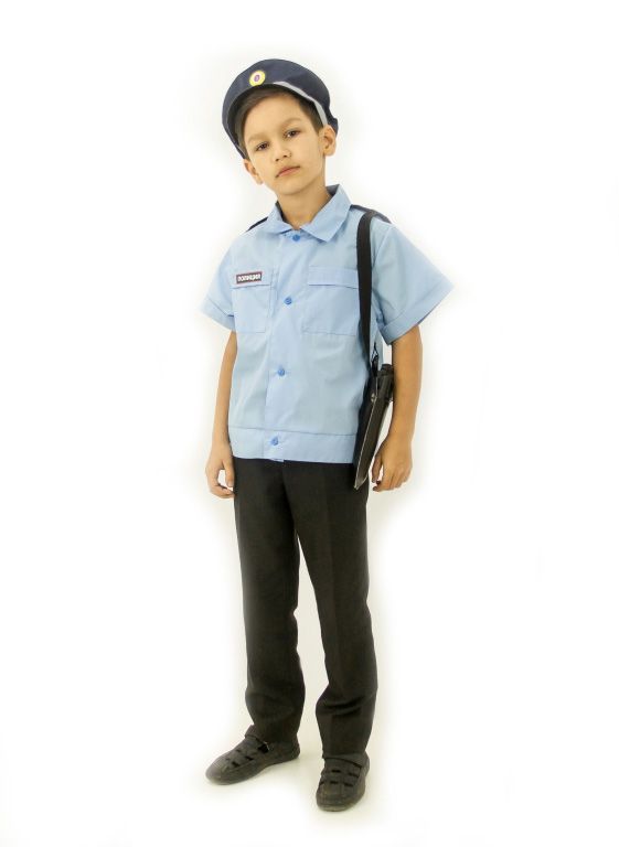 Костюм состоит из рубашки с четырьмя пуговицами и нагрудными карманами, кобуры и фуражки с козырьком.