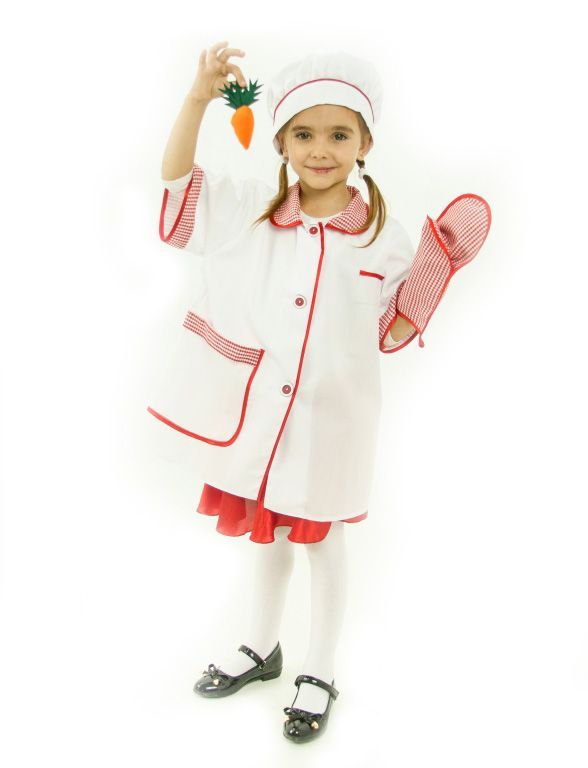 Костюм состоит из халата с карманом и воротником, колпака и прихватки. Халат застегивается на пуговицы.