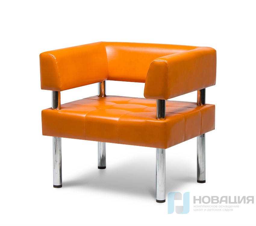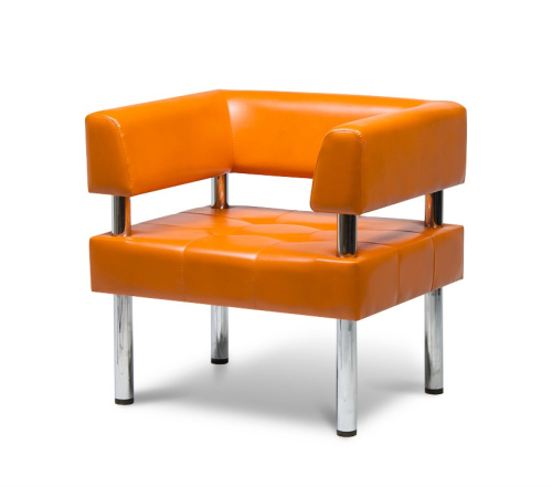 Кресло с прямоугольным сиденьем и спинкой оснащено 2-мя подлокотниками. Гладкая обивка и блестящие опоры быстро очищаются от загрязнений с помощью влажной ткани.
