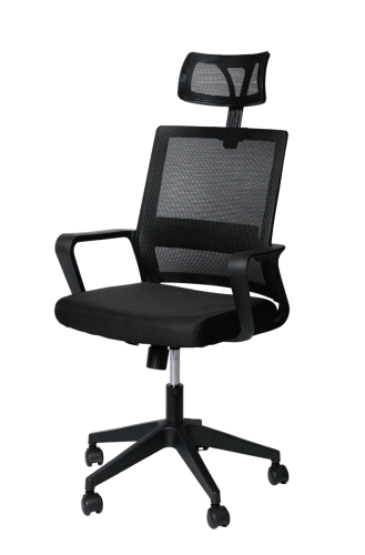 Эргономичная сетка на спинке поддерживает правильную осанку, а подголовник снижает нагрузку на шею.