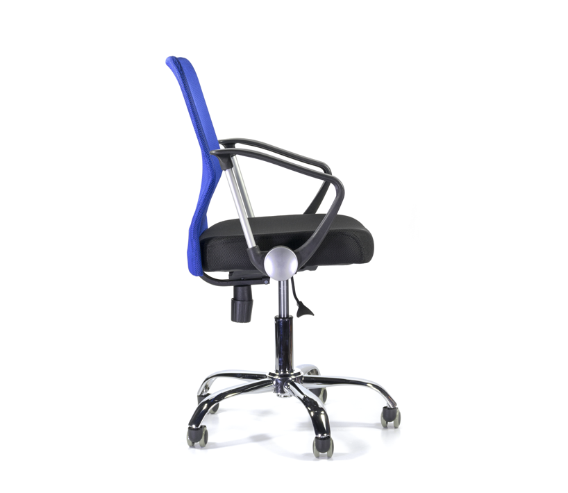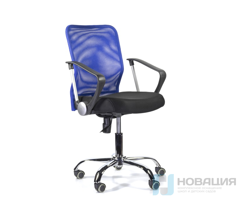 Операторское кресло на хромированной опоре с 5 лучами используется в лабораториях и компьютерных классах школ.