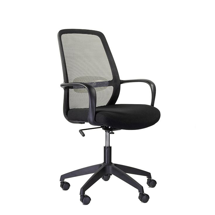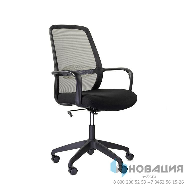 Мебель дополняется подлокотниками из пластика, сиденье оформляется тканью-сеткой. Высота кресла изменяется, пятилучье оборудуется роликами с покрытием из полиуретана.