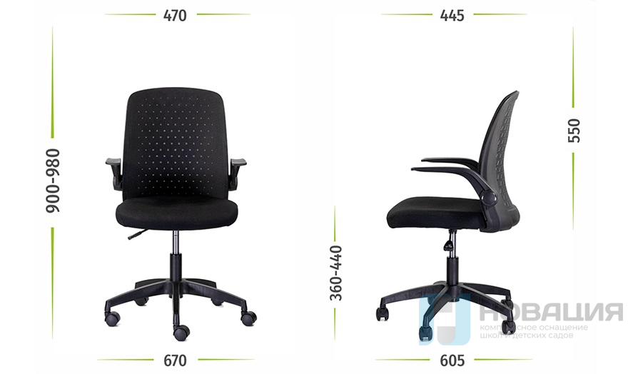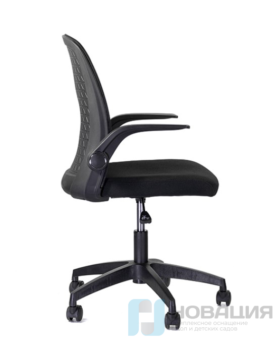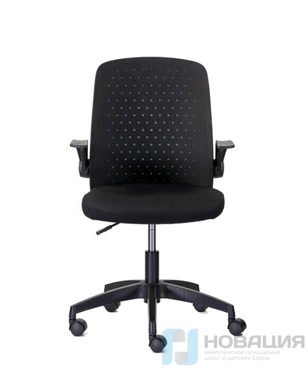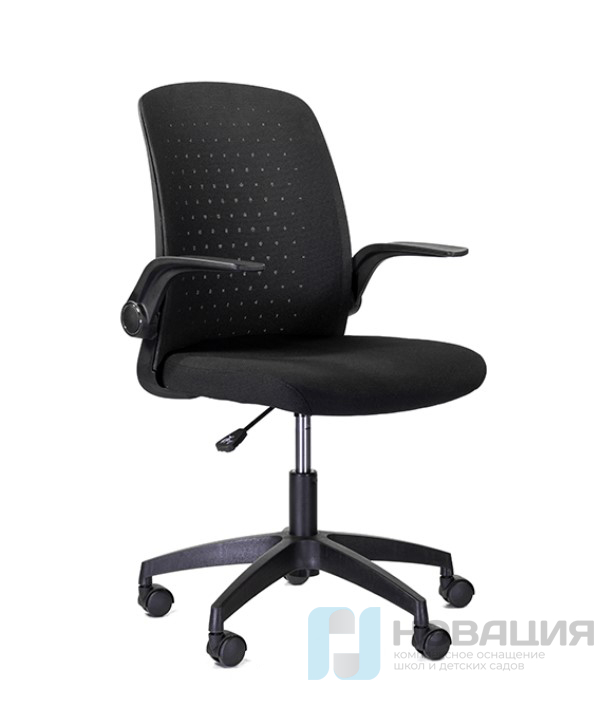 Цвет: каркас и подлокотники из черного пластика, обивка спинки и сиденья черного цвета.