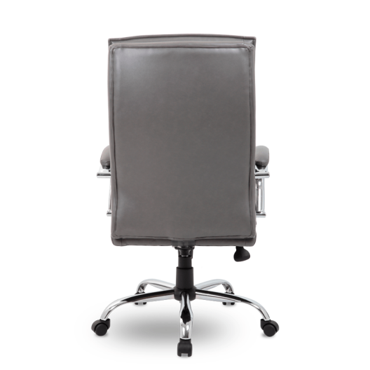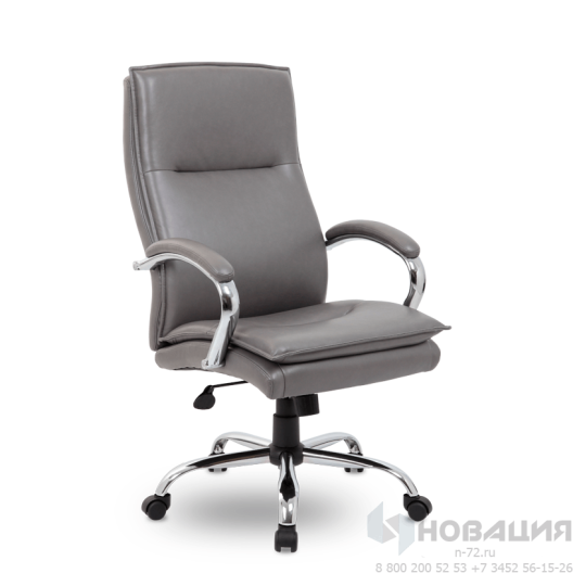 Мебель оснащается хромированными подлокотниками с накладками, отделана мягкой экокожей. Механизм качания подстраивается под вес, в наличии газ-лифт. Высота кресла изменяется, пятилучье d 700 мм оснащается роликами.