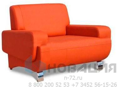 Кресло со спинкой и подлокотниками размещается на 4-х хромированных опорах. Материал обивки не требуется специального ухода.