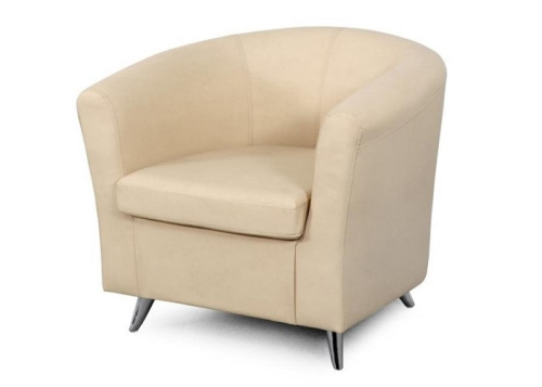 Спинка кресла плавно перетекает в подлокотники. Углы скруглены.