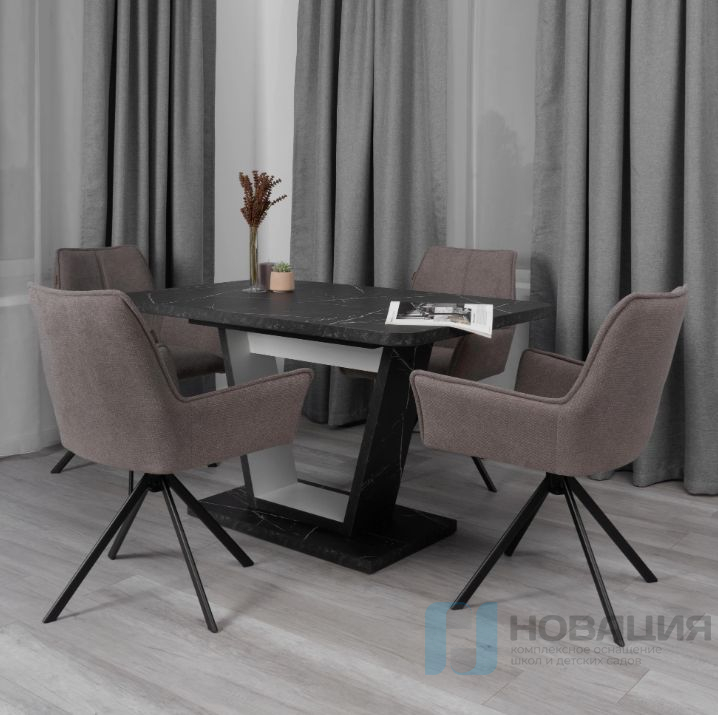 Прочный металлический каркас и берёзовый шпон обеспечивают долговечность конструкции. Износостойкая обивка упрощает уход и сохраняет внешний вид даже при интенсивной эксплуатации. Чёрные опоры добавляют стильный акцент и повышают устойчивость изделия.