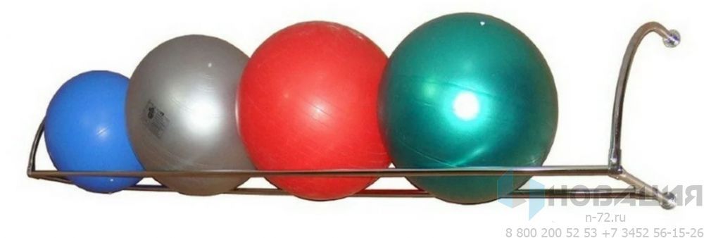 1-уровневая консоль подходит для фиксации гимнастических мячей. Фитболы хранятся между С-образными стойками с горизонтальными перекладинами. Стойки в 4-х точках монтируются к стене.