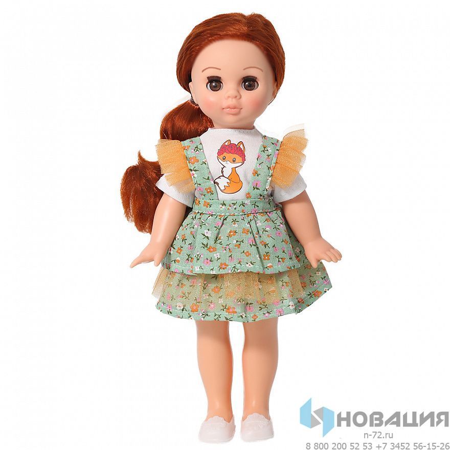 Кукла поставляется с комплектом одежды: футболка с термоаппликацией с изображением лисы, сарафан, трусы, туфли.