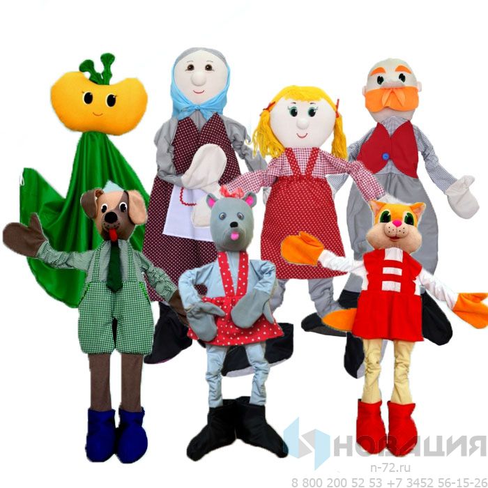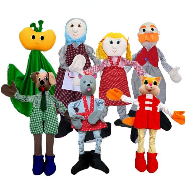Детский кукольный театр для ДОУ включает в себя 7 персонажей: Репку, Деда, Бабку, Внучку, Жучку, Кошку, Мышку.