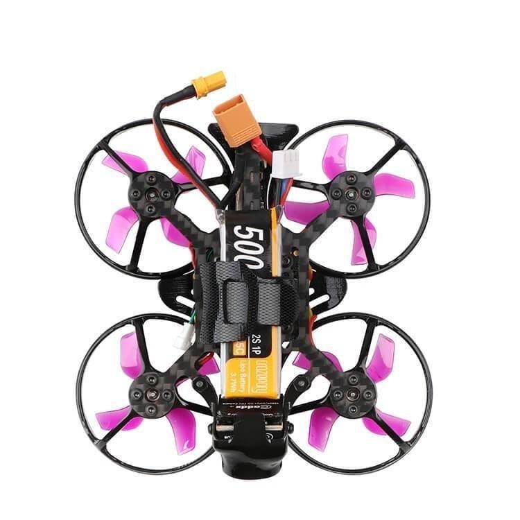 Полет устройства с видеопередатчиком длится 5 минут. Для тренировки подойдет просторный кабинет. Запуск вне помещений должен проходить в сухую безветренную погоду. Камера транслирует кадры в формате 1080P/601ps, 1080P/30ps, 720P/601ps. Дополнительные устройства для приема картинки (мониторы, очки, шлемы) приобретаются отдельно.