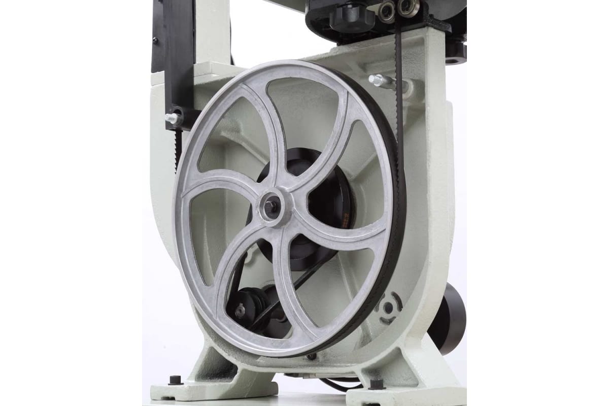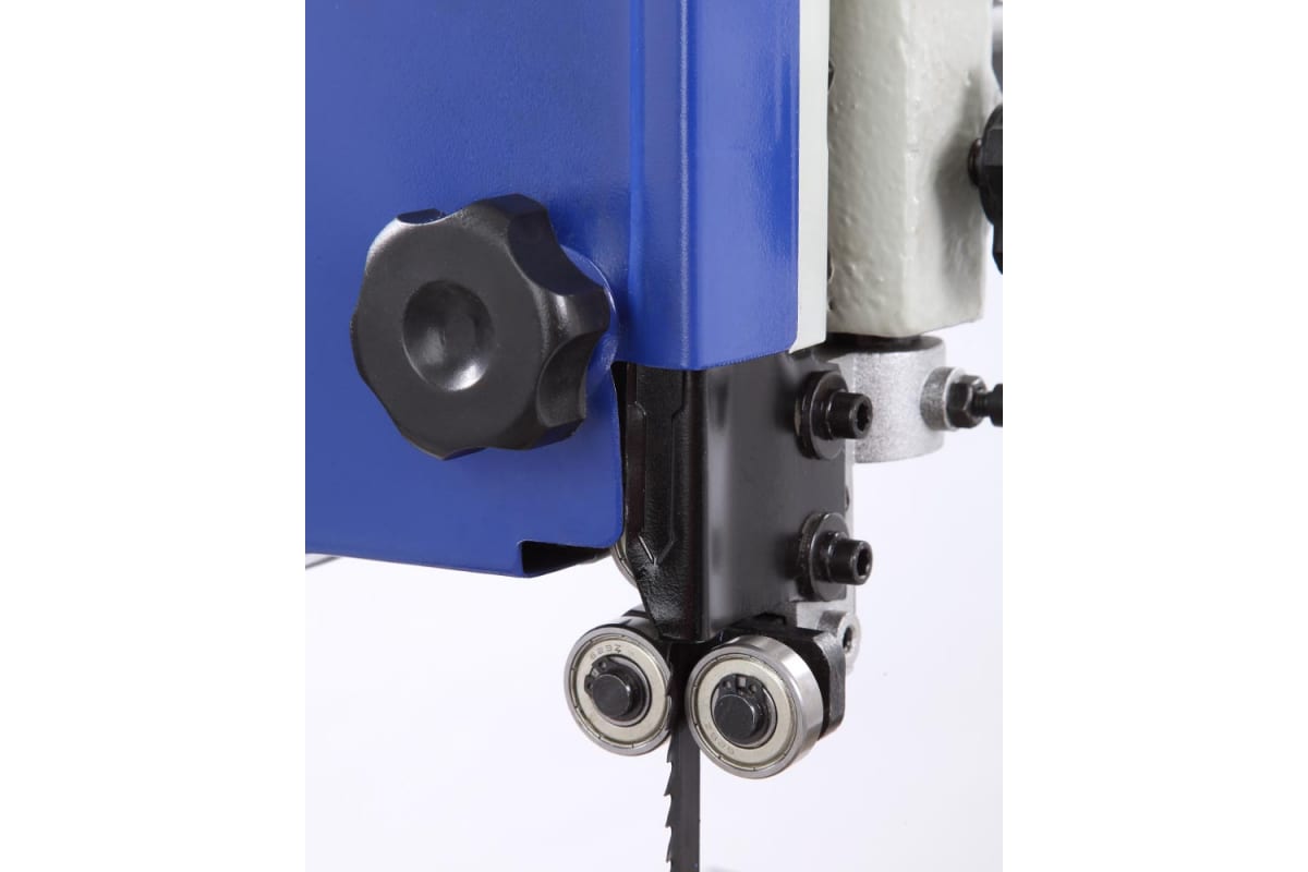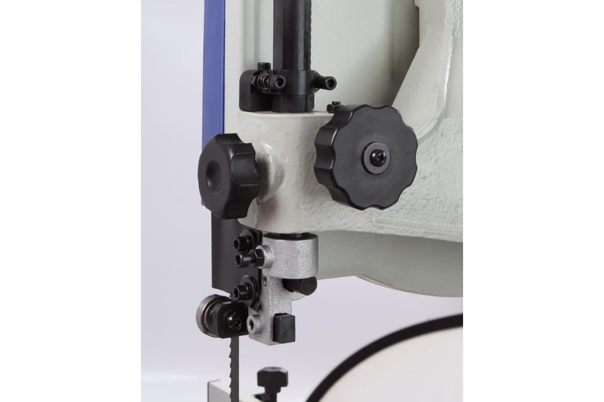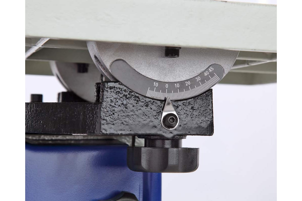 Предусмотрено 2 упора: угловой (от -30 до +30 град) и параллельный (L 407 мм). Скорость вращения пильного полотна в разных режимах составляет 510-680 м/мин. Стружка удаляется через патрубки. Ширина полотна меняется в пределах 3-19 мм.